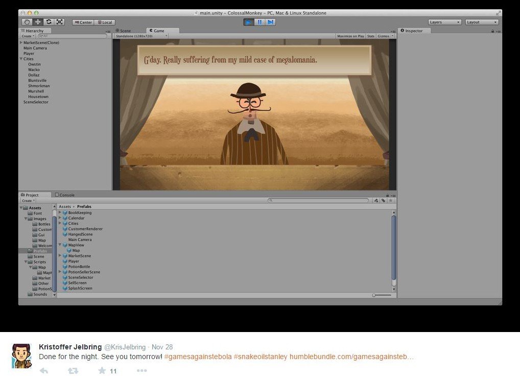 People were asked to donate an amount of their choice in exchange for all of the games created during the event. 100% of proceeds will benefit Direct Relief’s work to stop Ebola. A big thanks to all the developers, the Humble Bundle community, and everyone who purchased one of the bundles.