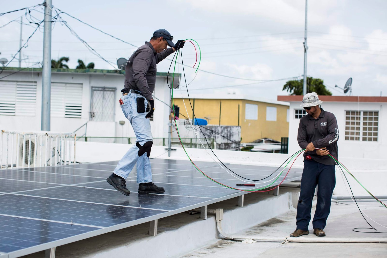 A solar power system is installed at Clínica Iella in San Juan, Puerto Rico, on July 5, 2018. The new solar power system, funded by Direct Relief, will allow the clinic to sustain services during a power interruption.(Photo by Erika P. Rodriguez for Direct Relief)