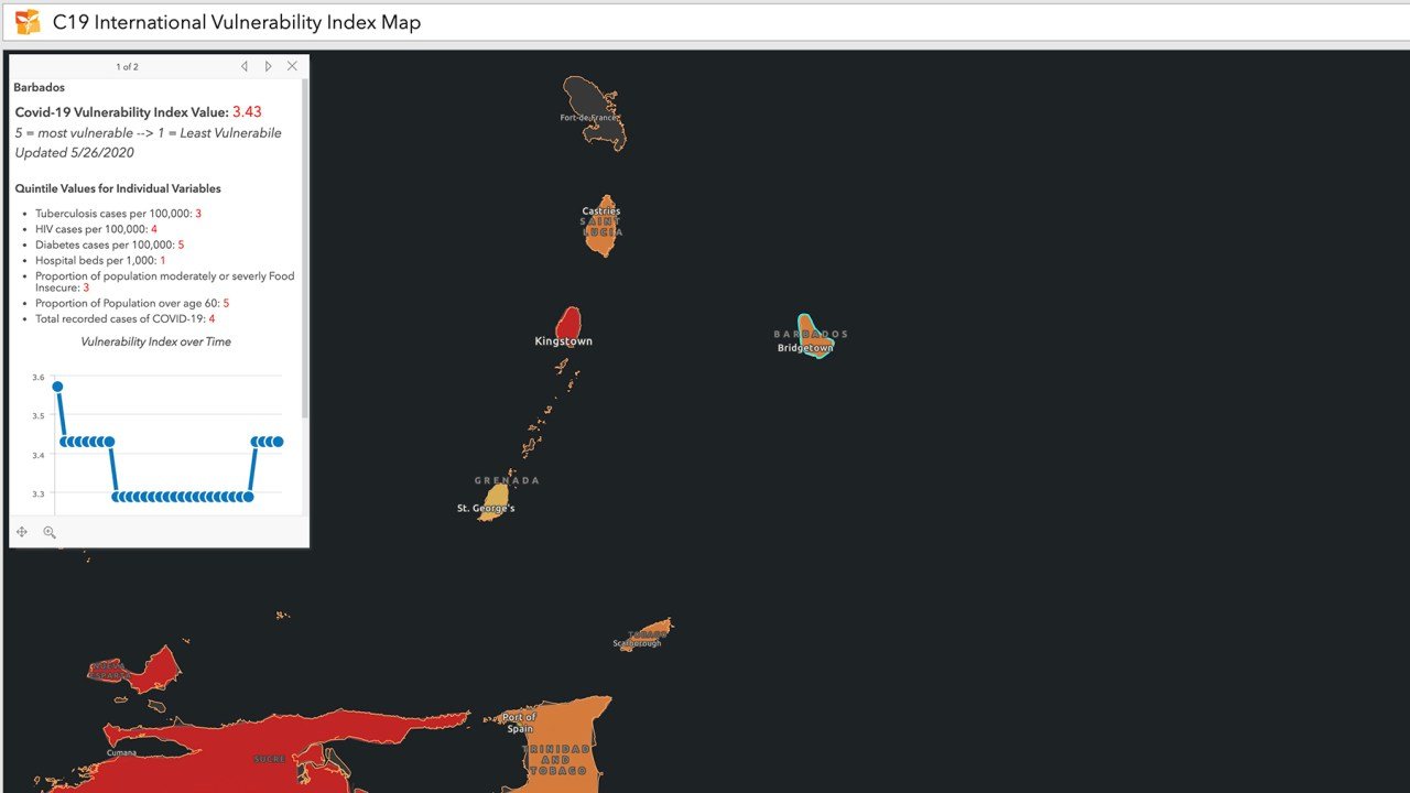 A few weeks ago, Lopez-Carr noticed that Barbados’s vulnerability to Covid-19 – along with that of a few other nations – had increased.