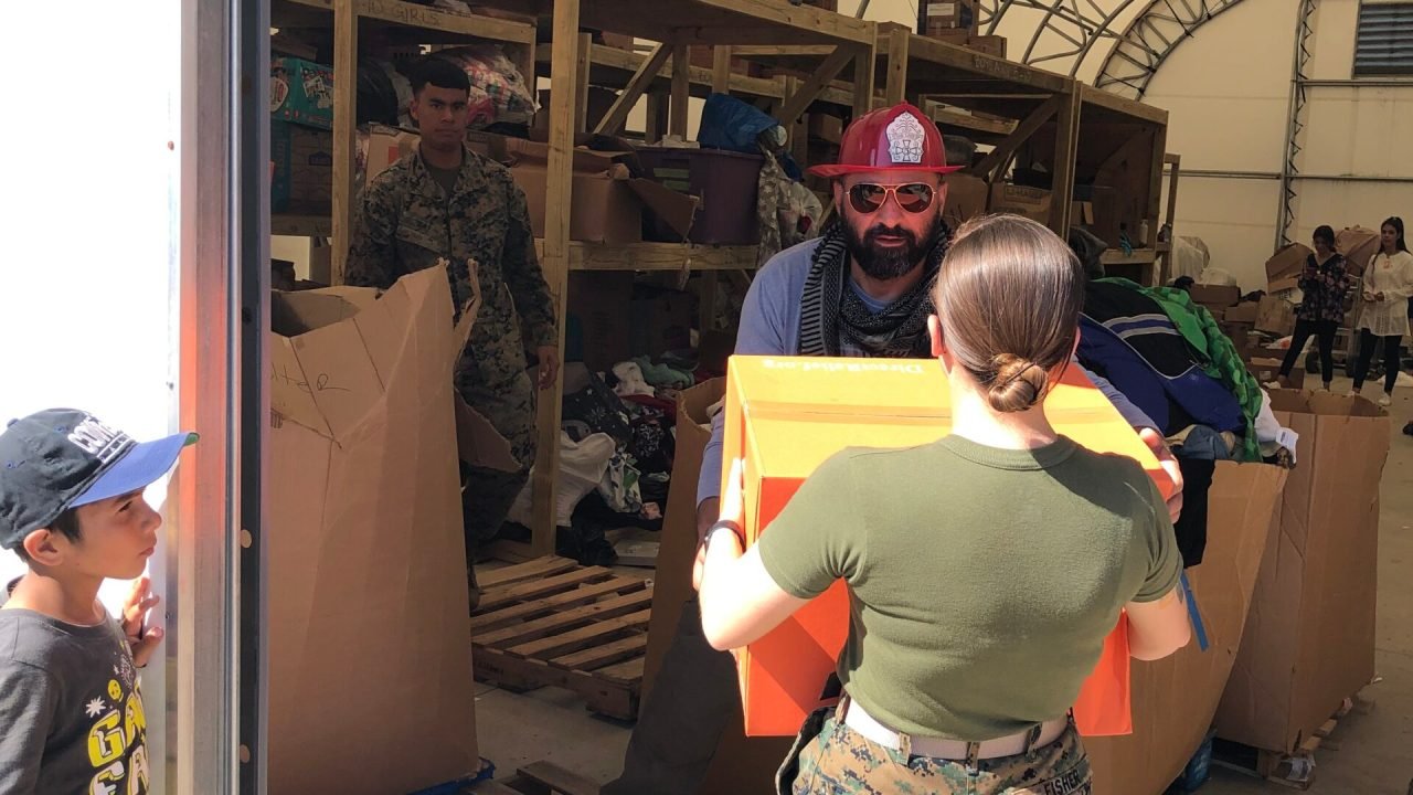 U.S. Marines receive donated supplies for Afghan refugees on Sep. 30, 2021 at Marine Corps Base Quantico in Virginia. (Photo Courtesy of Natalie Trogus)