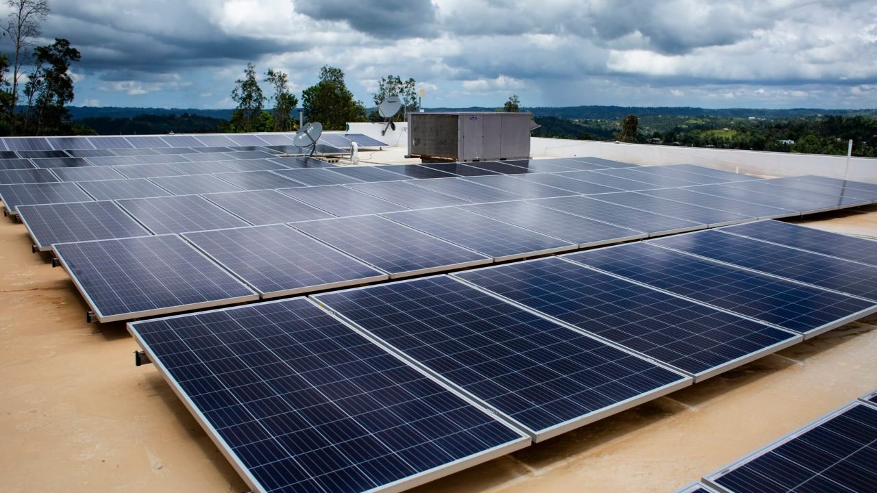 Solar panels on the roof of Migrant Health Center in Las Marias, Puerto Rico. The panels were installed to withstand hurricane-force winds, and will provide power back-up when electricity is interrupted. Direct Relief is launching an initiative to support resilient power for nonprofit safety net health providers across the U.S. (Erika P. Rodriguez for Direct Relief)