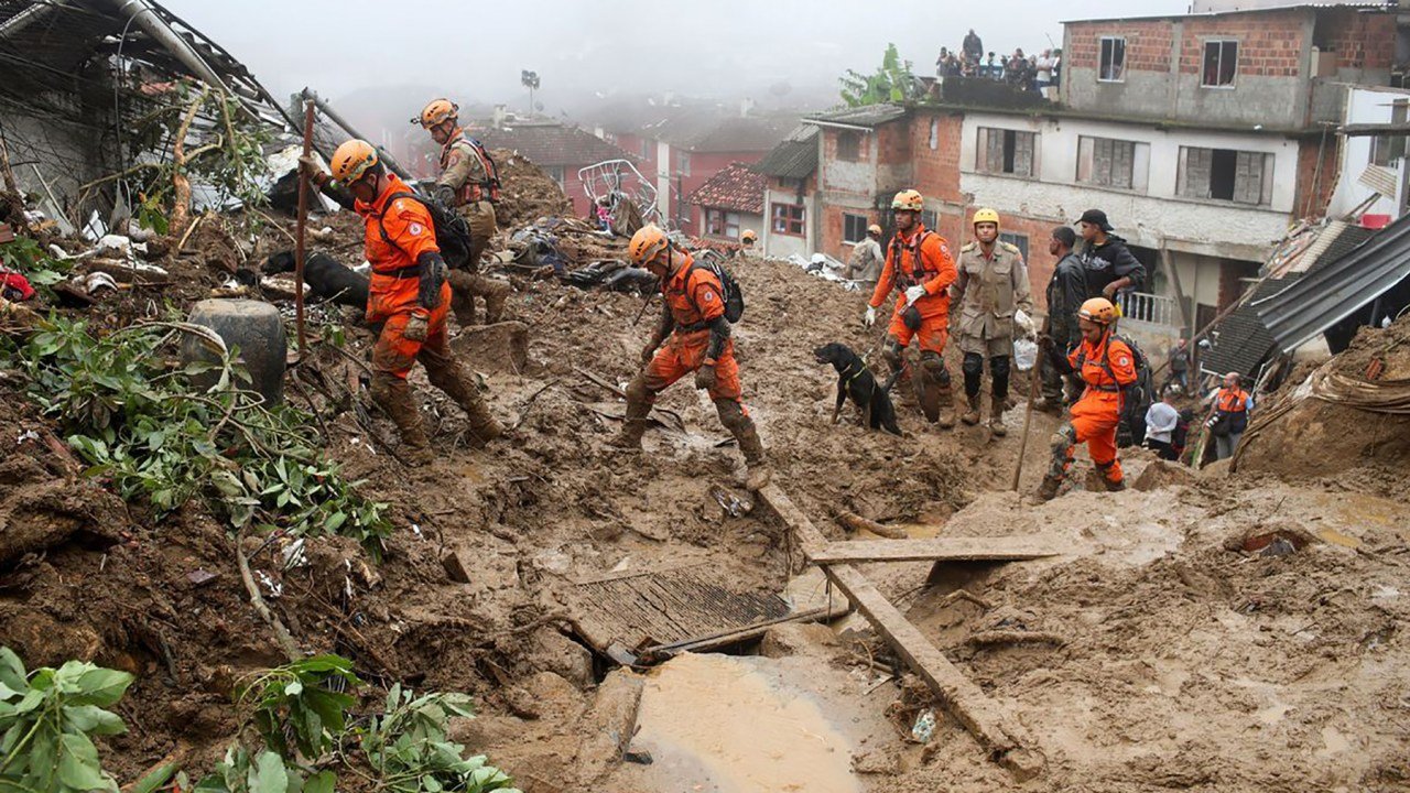 Search and rescue teams respond on Feb. 17, 2022, after heavy rains devastated the city of Petrópolis, in Brazil. (Government of Brazil photo)