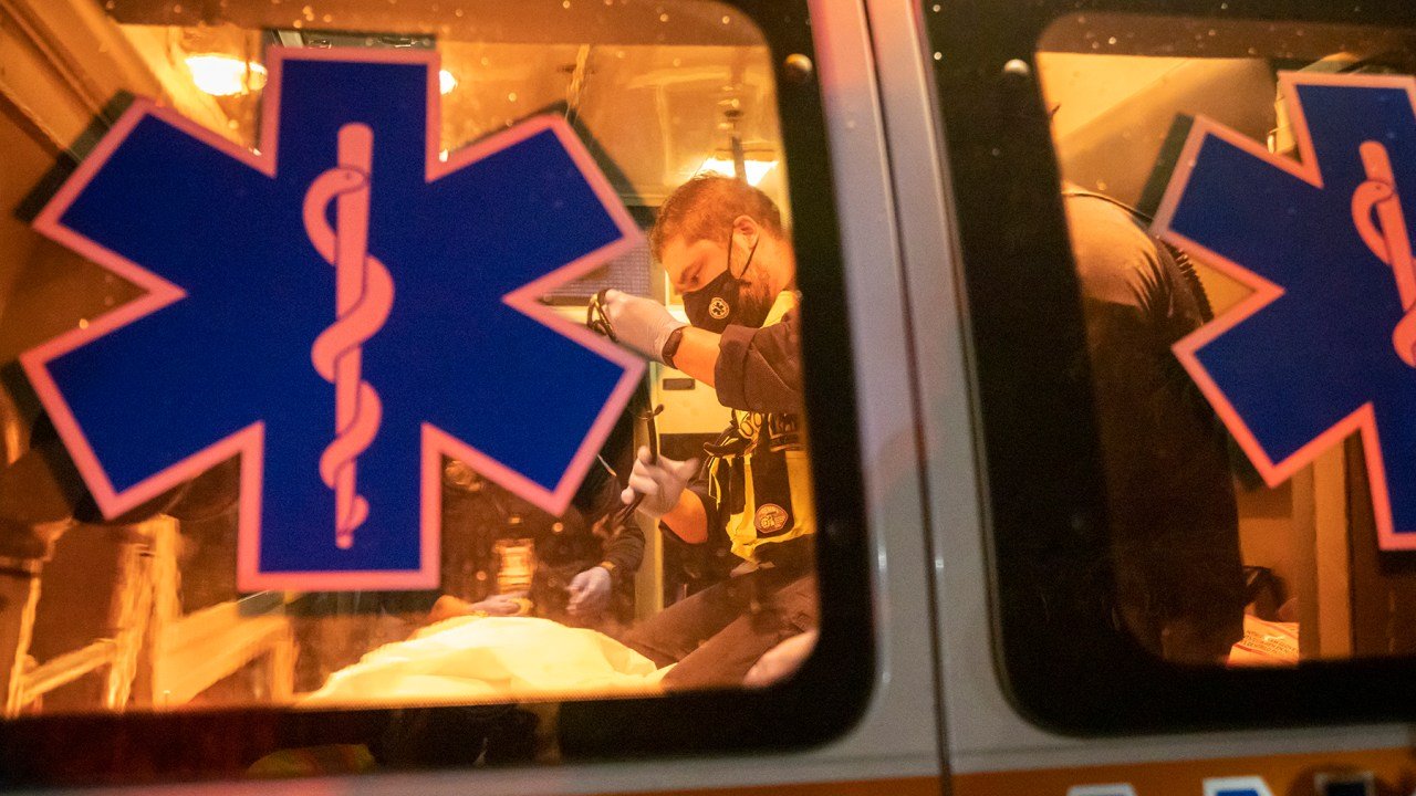 A paramedic with Puerto Rico’s First Response Emergency Medical Services, or FREMS, treats a patient in San Juan, Puerto Rico. FREMS is a group of first responders donating their time (and often their resources), to help those involved in car accidents, traumatic injuries, fires, floods, and other emergencies. To expand their emergency response capacity in Puerto Rico, Direct Relief, as part of AbbVie’s $50 million donation, awarded a $350,000 grant to FREMS to purchase a new rescue unit and medical equipment such as complex cardiac monitors. (Photo by Alejandro Granadillo for Direct Relief)