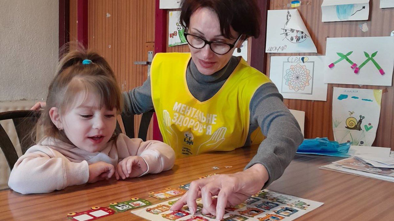A Ukrainian psychologist hired by the League for Mental Health works with a girl at Gabčíkovo Asylum Seeker Accommodation Centre in Slovakia. (Photo Courtesy of The League for Mental Health)