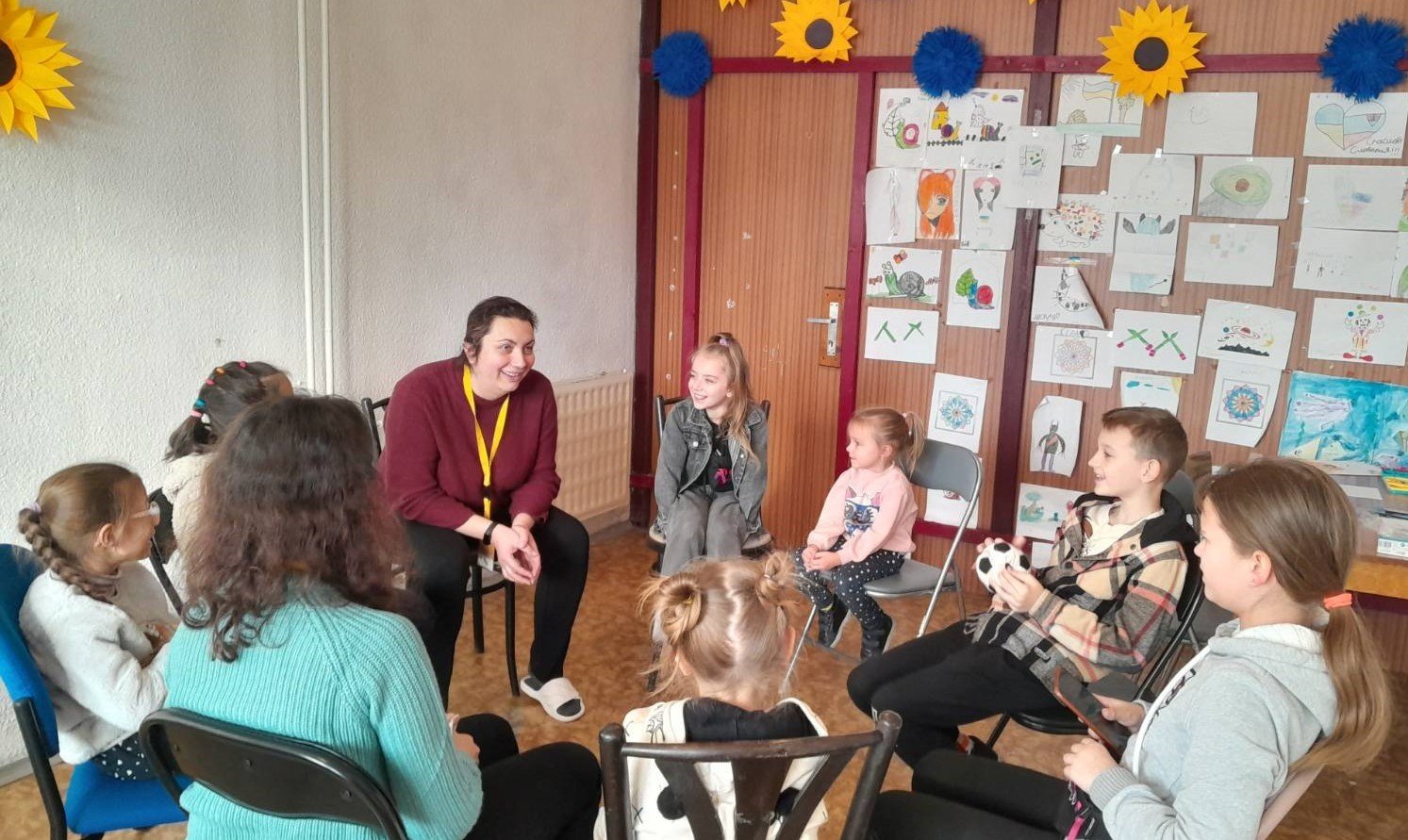 League for Mental Health staff works with a group of kids at Gabčíkovo Asylum Seeker Accommodation Centre in Slovakia. (Photo Courtesy of The League for Mental Health)