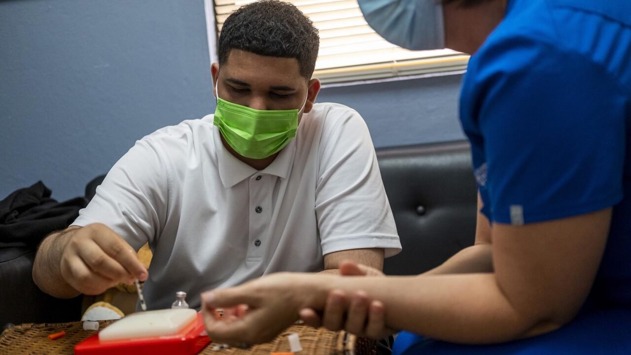 A young person in Puerto Rico practices administering insulin with a syringe to manage diabetes. Direct Relief and Baxter International Foundation awarded several organizations working with people living with diabetes to better manage their health. (Direct Relief photo)