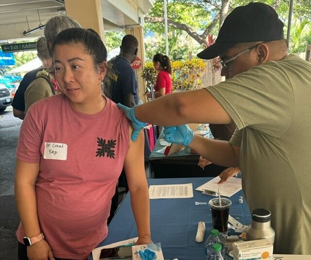 Malama I Ke Ola staff provide Direct Relief-provided Covid vaccines at a health fair in Maui. (Courtesy photo)