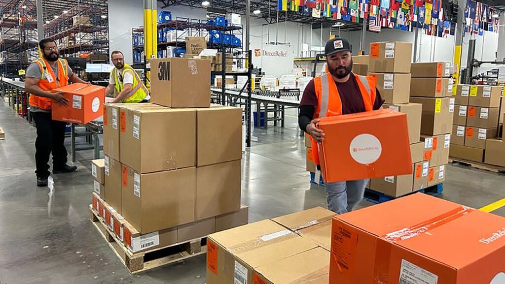 Medical aid departs Direct Relief’s warehouse on May 20, 2025, bound for Missouri communities impacted by recent tornadoes. (Shannon Hickerson/Direct Relief)
