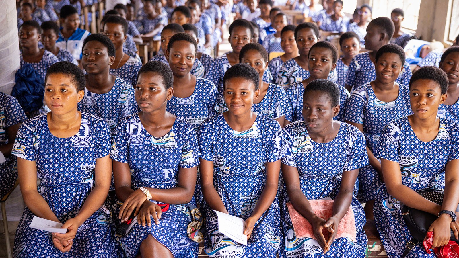 Young women attend a cancer awareness event organized by Dr. Beatrice Wiafe Addai in Ghana, August 2025. (Photo by David Uttley for Direct Relief)