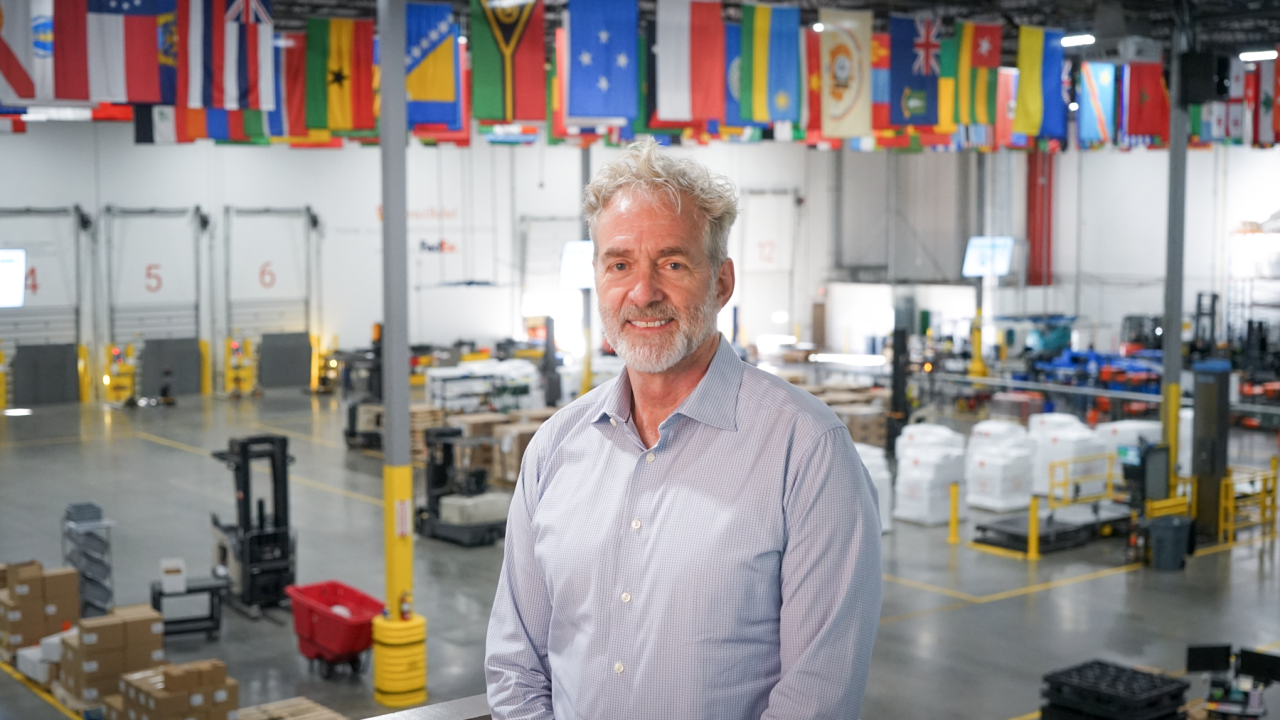 Craig Redmond, Direct Relief's Chief Operating Officer, is pictured in the organization's warehouse on Dec. 15, 2025. Before joining Direct Relief, Craig was the CEO for Relief International, a primary health care focused organization. (Lara Cooper/Direct Relief)