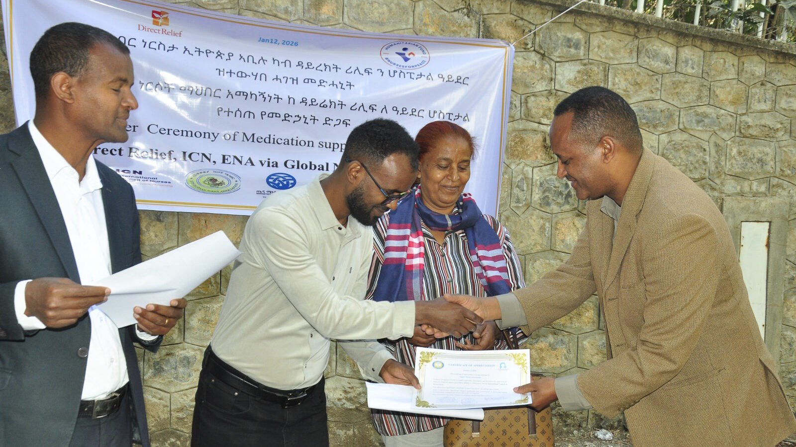 A formal handover ceremony took place on January 12, attended by leadership from the Ethiopian Nurses Association, hospital staff, regional health authorities, and local media. The medicines are now being used at Ayder Hospital and will also support onward distribution to additional healthcare facilities across the region.