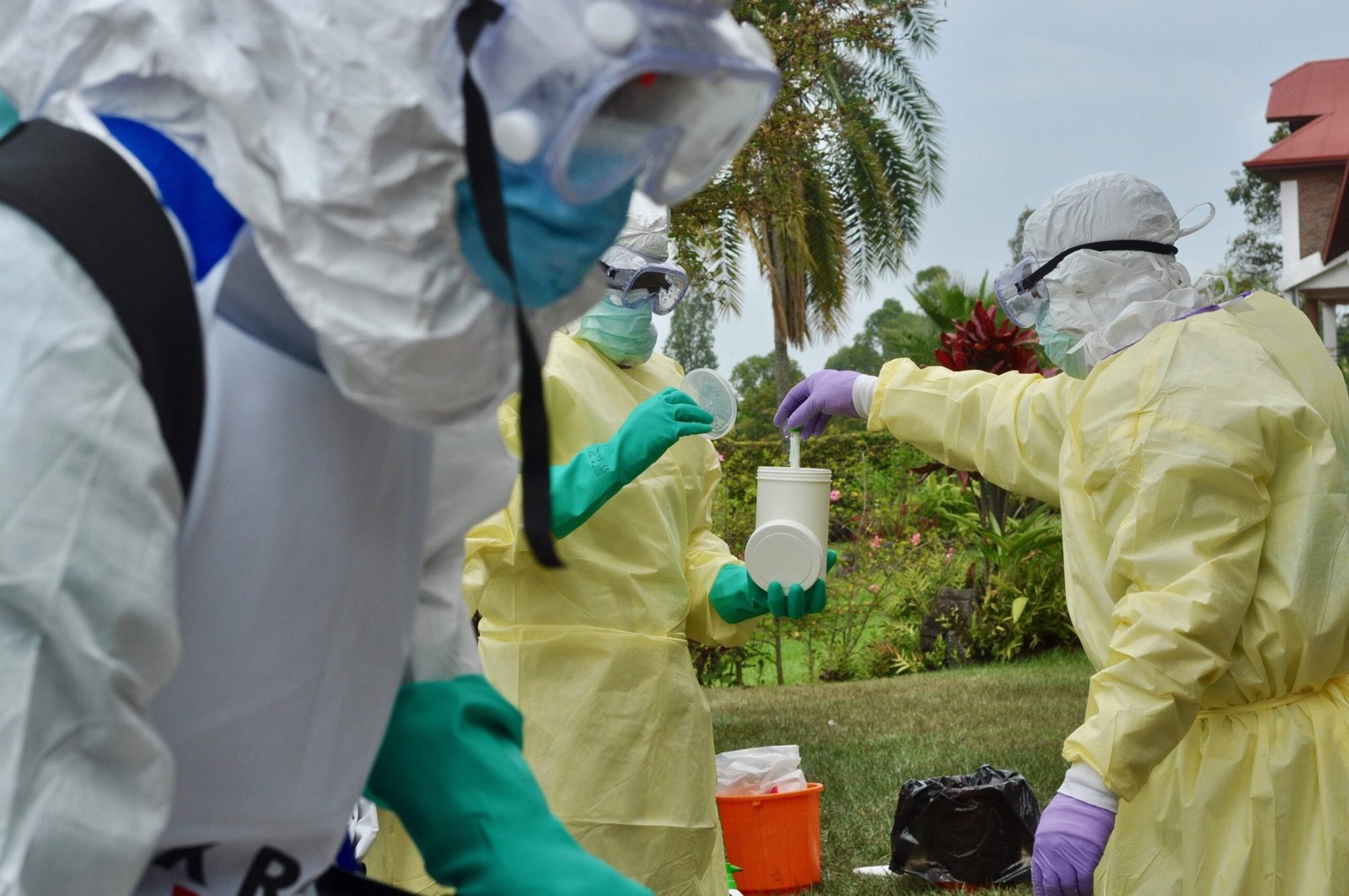 Ebola is highly contagious through infected bodily fluids such as sweat, blood, and saliva, and remains infectious even after death.