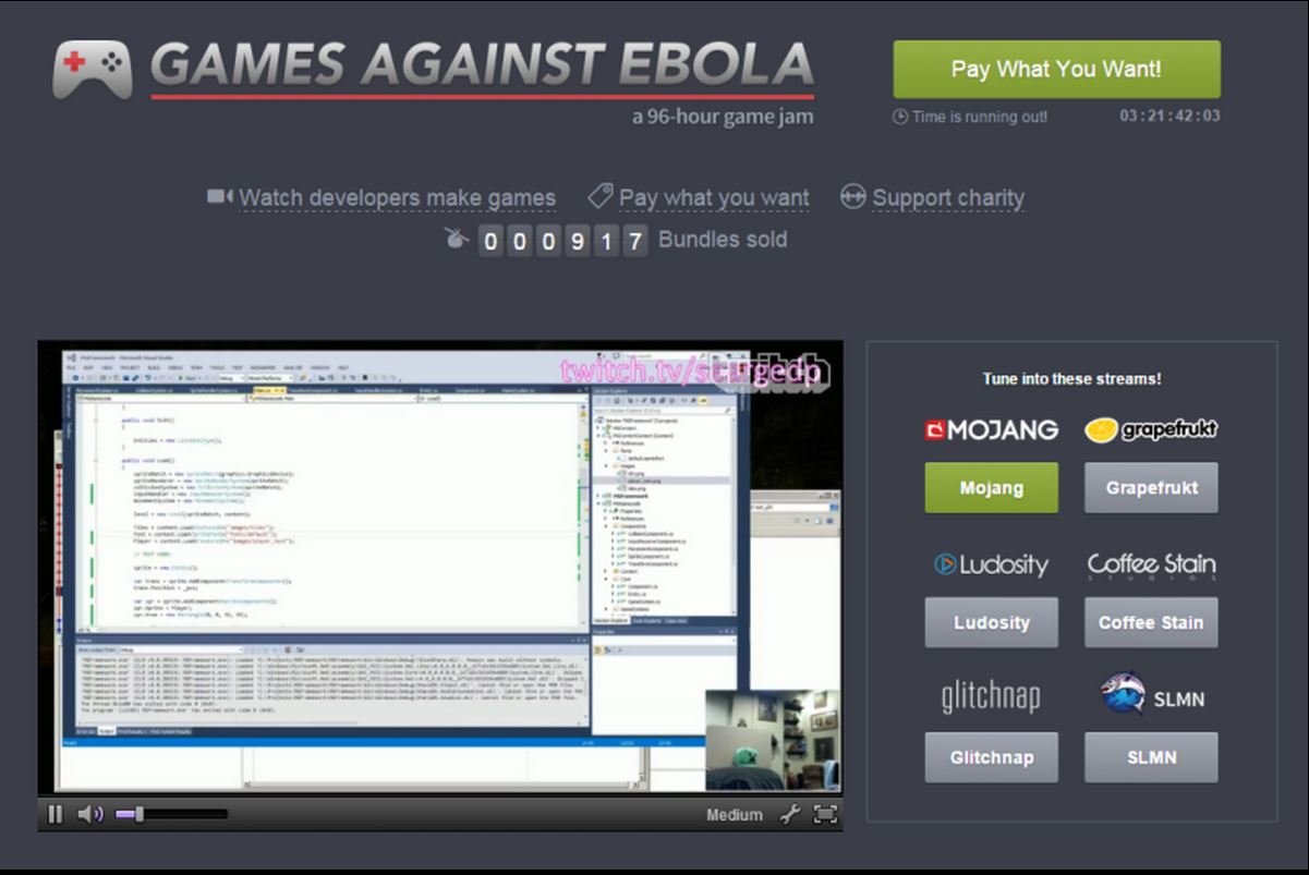 People were asked to donate an amount of their choice in exchange for all of the games created during the event. 100% of proceeds will benefit Direct Relief’s work to stop Ebola. A big thanks to all the developers, the Humble Bundle community, and everyone who purchased one of the bundles.