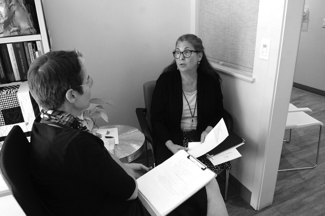 Janice Shea meets with a colleague at the Goleta Neighborhood Clinic. The clinic where Shea works recently received a critical donation of naloxone, an opioid overdose-reversing drug. (Lara Cooper/Direct Relief)