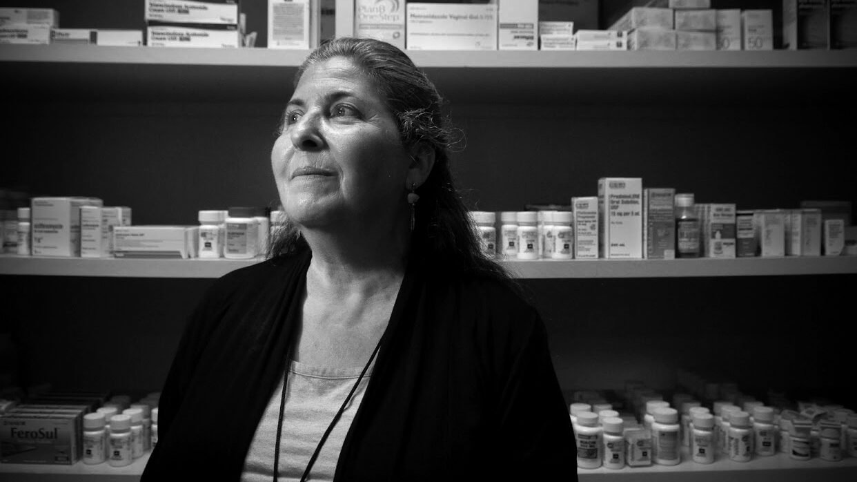 Janice Shea stands in the dispensary of the Goleta Neighborhood Clinic. Shea was once a frequent user of heroin, but has been clean for 33 years. She now works as a behavioral healthcare counselor at the clinic, working with substance abuse patients. The clinic where Shea works has received a critical donation of naloxone, an opioid overdose-reversing drug. (Lara Cooper/Direct Relief)