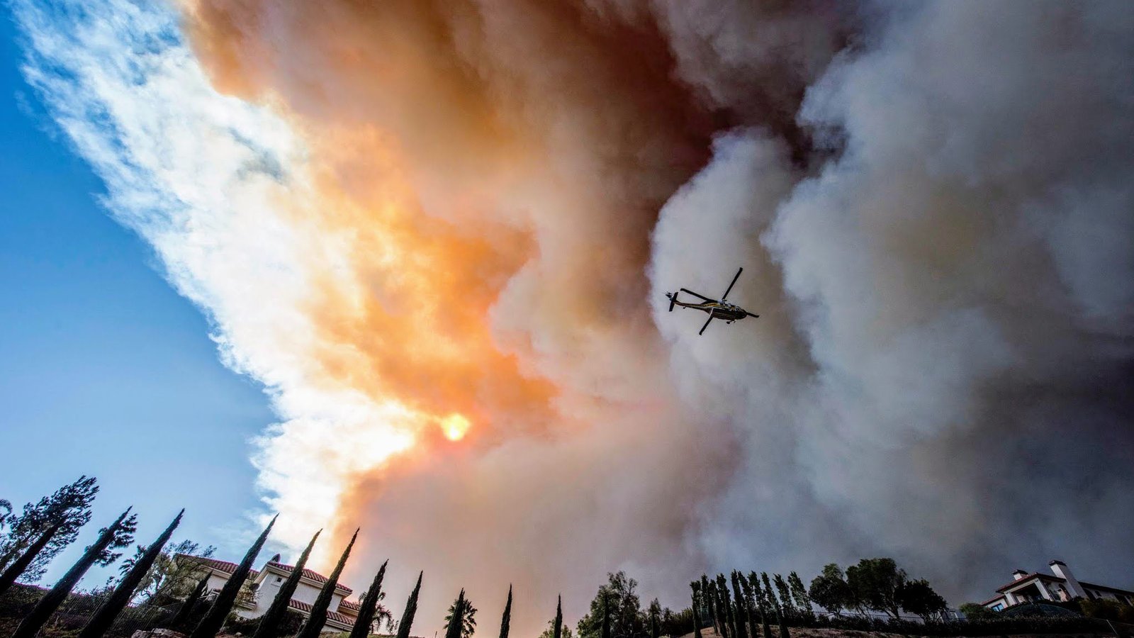 A Firehawk flown by Los Angeles County Fire fights the Woolsey Fire that blazed through Malibu on Nov. 9, 2018. Santa Barbara County will soon also fly a Firehawk. (Photo courtesy of Erick Madrid)