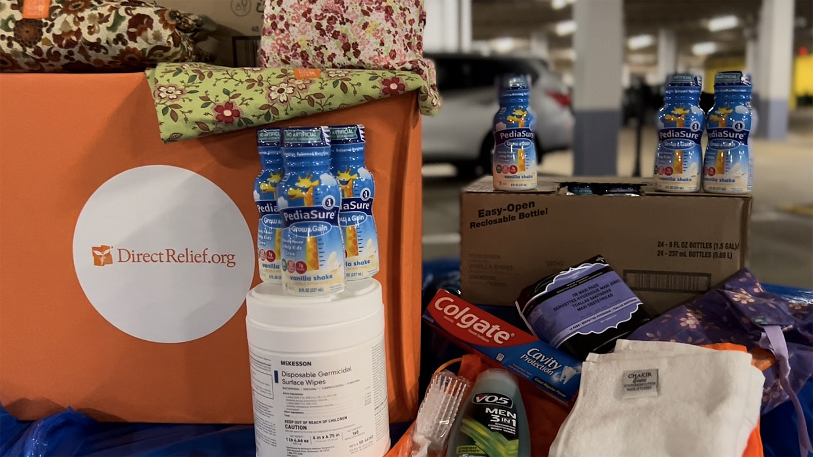 The shipment included more than 14,000 bottles of Pediasure, Similac and Ensure, hygiene kits, Dove soap, and disinfectant wipes.