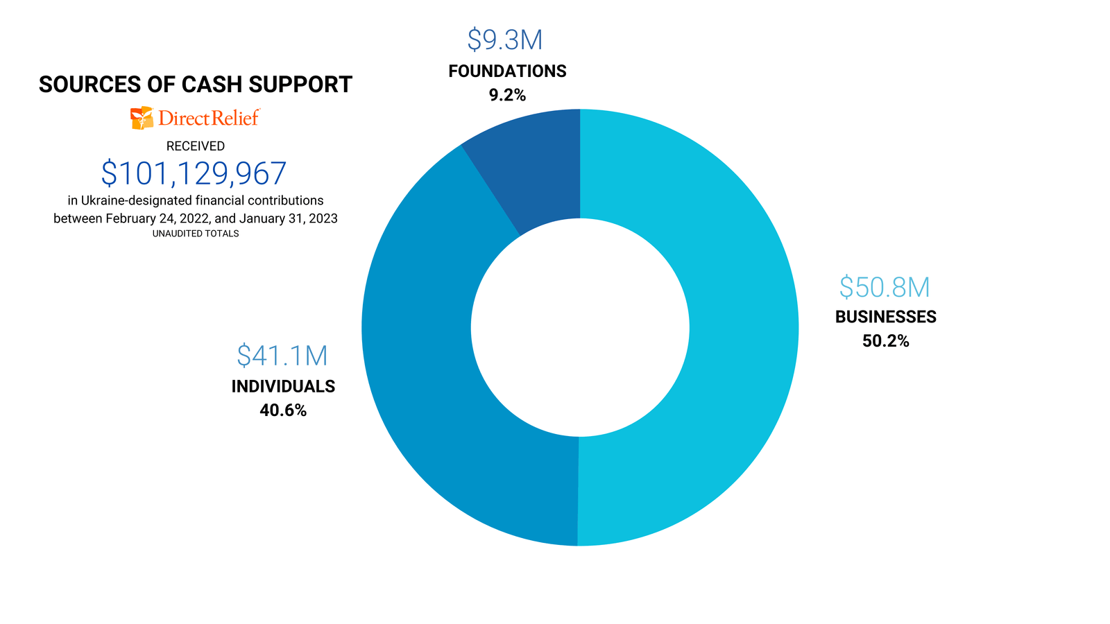 In response to the war in Ukraine, Direct Relief received 151,669 Ukraine-designated financial contributions totaling $101,129,967.