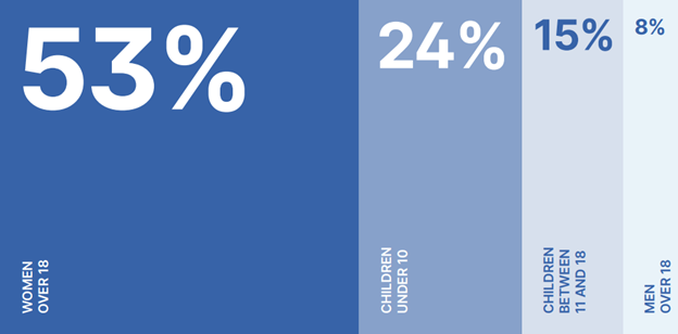 Women and children comprised most fund recipients (92%), with ages ranging from as young as five days up to 97 years.