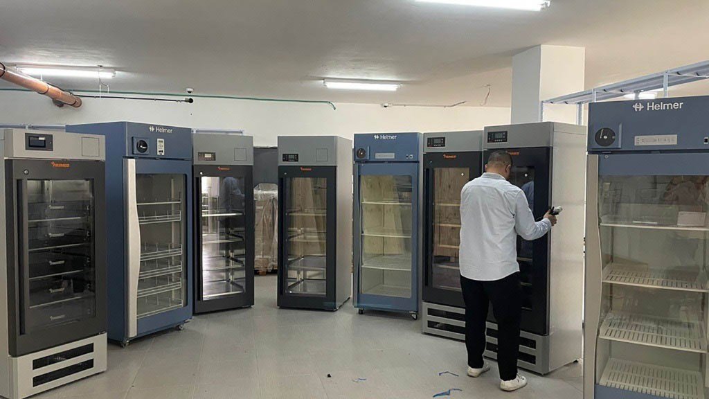 Medical-grade refrigerators are installed at Al Ahli Hospital in the West Bank. (Courtesy photo)