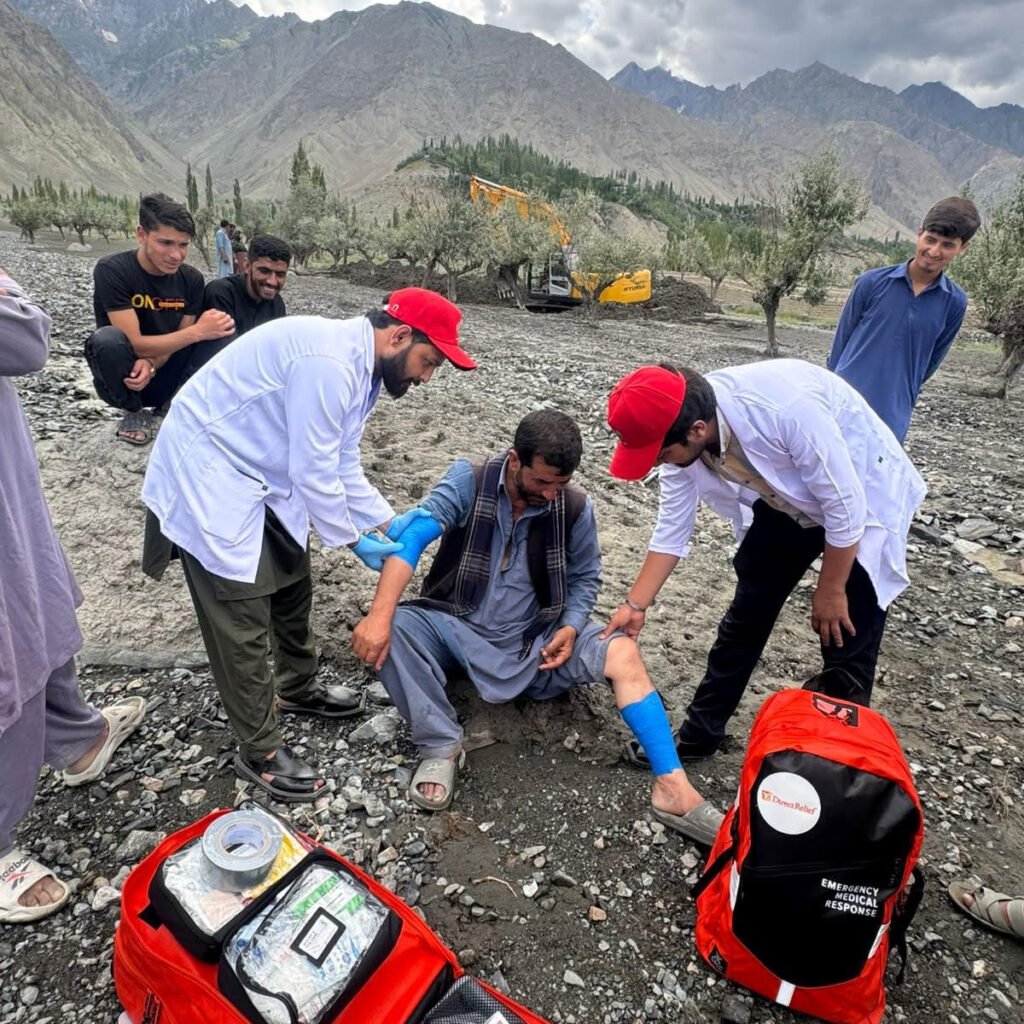 Search and rescue teams reached stranded mountaineers and isolated villages, while medical teams treated the injured and displaced. In one village near the Line of Control — the militarized boundary between India and Pakistan — the Marafie Foundation organized a mobile medical camp. Doctors provided urgent care, distributed Direct Relief-donated medicines, and supported families whose homes and infrastructure had been destroyed.