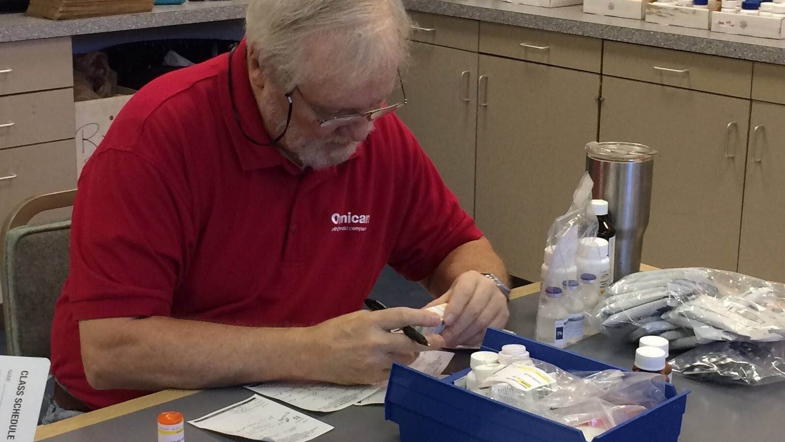A pharmacist at MLK Health dispenses medication in the aftermath of Hurricane Harvey. (Photo courtesy of MLK Health)